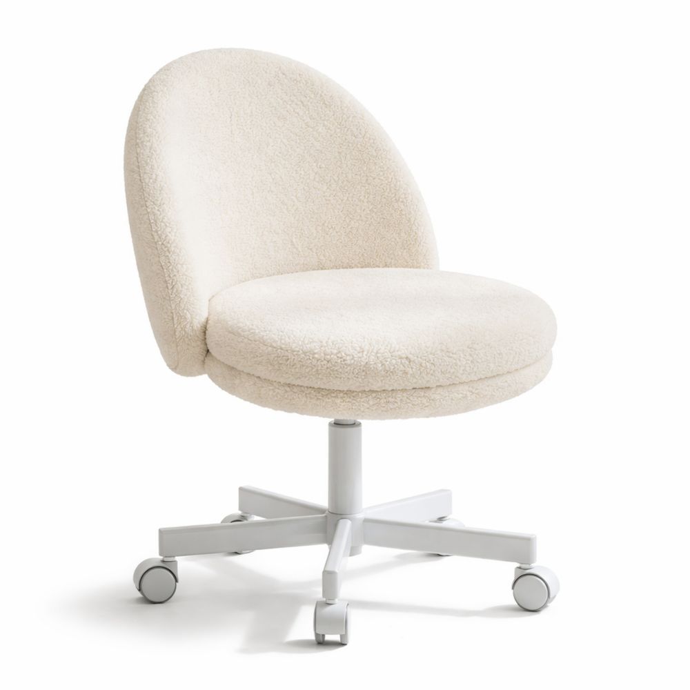 Ergonomischer Bürostuhl ohne Armlehnen, Drehstuhl mit Rückenunterstützung, Höhenverstellbarer Arbeitsstuhl, Weiß