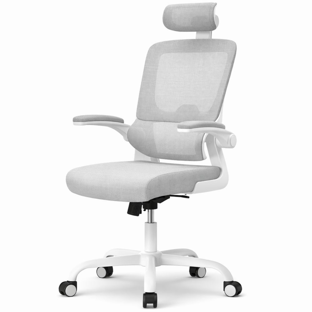 Ergonomischer Bürostuhl mit Verstellbarer Kopfstütze und Netzbezug, Graue Farbe