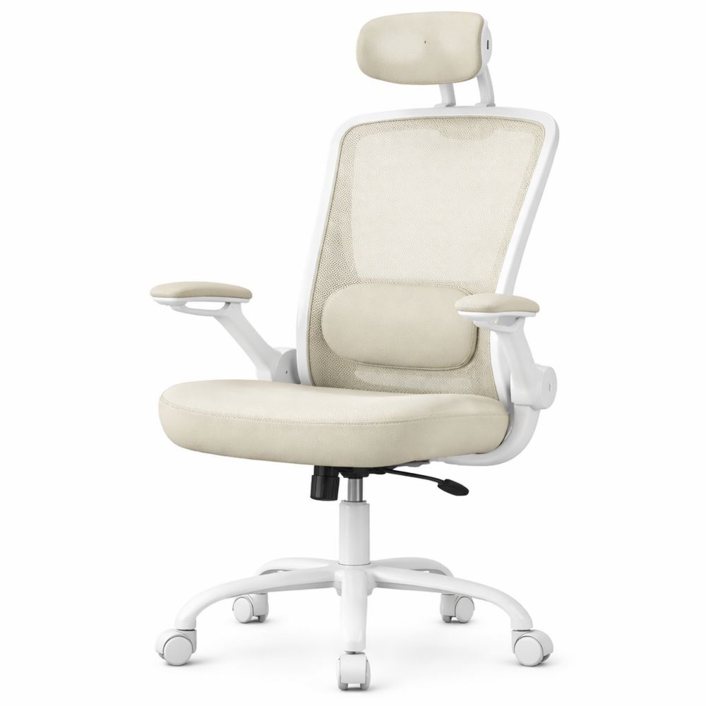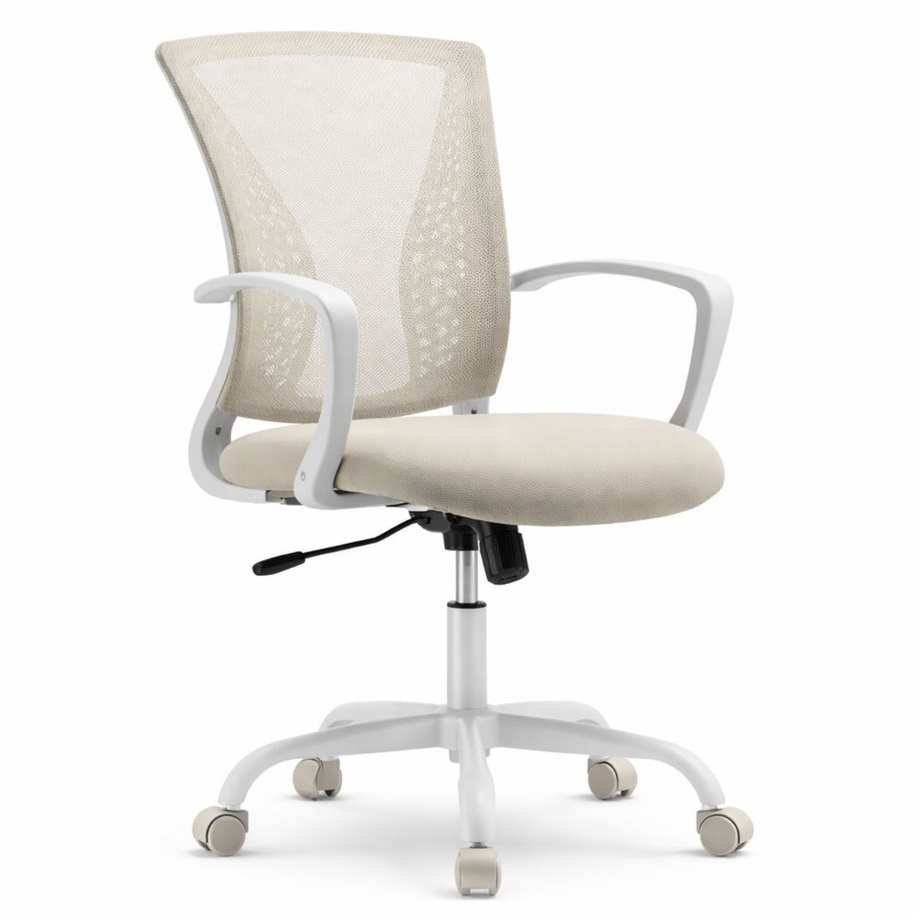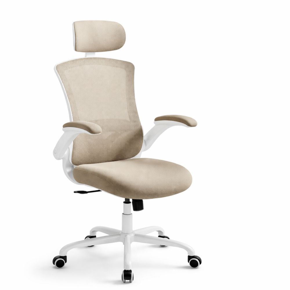 Ergonomischer Bürostuhl mit Netzstoff, höhenverstellbar, drehbar, Wippfunktion, atmungsaktiv, bis 120 kg, cappuccinobeige
