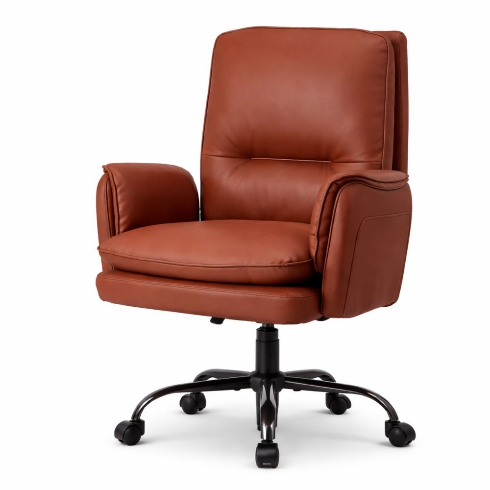 Die Rückenlehne dieses Bürostuhls kann zwischen 90 und 135 Grad eingestellt werden, um den Sitzkomfort während langer Arbeitszeiten zu erhöhen und Belastungen zu reduzieren. Der Stuhl ist so konzipiert, dass er sowohl in modernen als auch in klassischen Umgebungen eingesetzt werden kann, passend für Büros, Studierzimmer, Wohnzimmer oder Schlafzimmer. Die Sitzhöhe ist von 100 bis 108 Zentimeter verstellbar und kann individuell angepasst werden. Der Stuhl hat ein dickes Schwammkissen mit hoher Dichte und eine stabile Metallbasis mit leisen Nylonrollen, die den Boden schützen. Der Stuhl ermöglicht eine 360-Grad-Drehung und bietet Flexibilität und Stabilität.